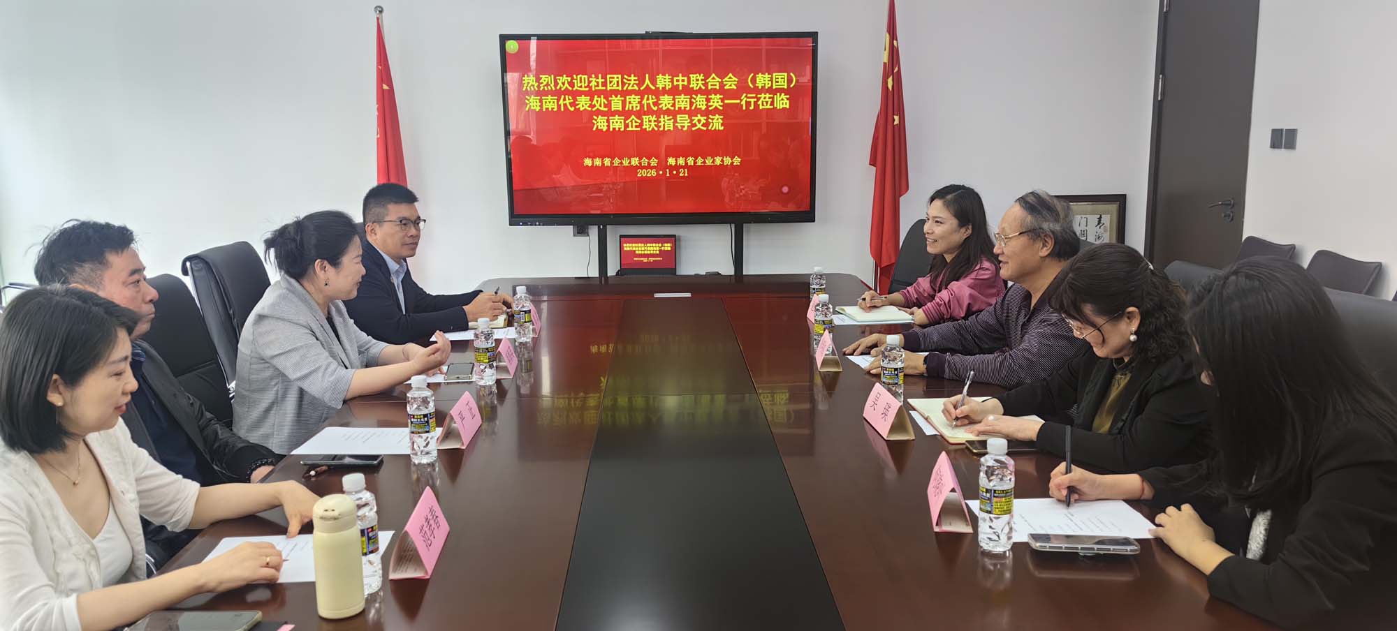 为助力海南自贸港建设,拓宽国际交流合作,1月21日,海南省企业联合会/海南省企业家协会(以下简称“海南企联”)与社团法人韩中联合会(韩国)海南代表处举行座谈交流会。双方围绕促进琼韩两地经贸投资、产业对接等议题进行深入探讨,共商合作发展新路径。