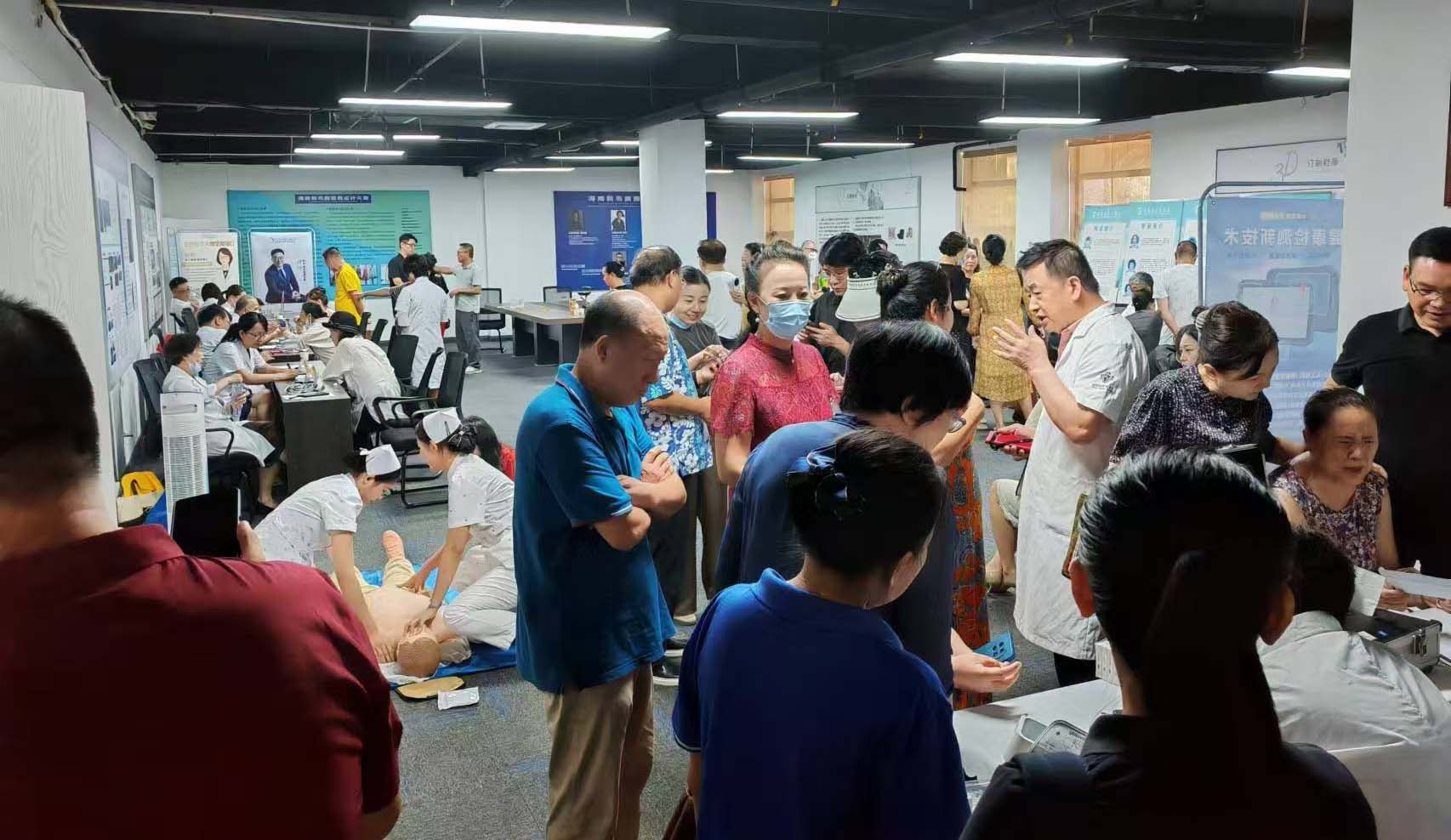 义诊现场,各方医疗团队的专家早早地做好了准备,他们携带专业的医疗设备,热情地为前来咨询和就诊的企业家们服务。现场涵盖了不同科室的中西医咨询,中医针灸,中医按摩,免费提供血尿酸、血糖、骨密度检测,全身热像仪检测等项目。医疗专家们认真地为企业家进行身体检查,详细询问他们的健康状况,耐心解答他们提出的各种医疗问题,并给出科学合理的治疗建议和健康指导。现场设置了健康知识展板和相关资料,为企业家普及常见疾病的预防和保健知识,还安排了应急急救方法的讲解和现场演示。此次义诊活动,不仅为企业家们解决了实际健康问题,也进一步增强他们树立正确的健康观念,得到企业家们的欢迎和赞赏。